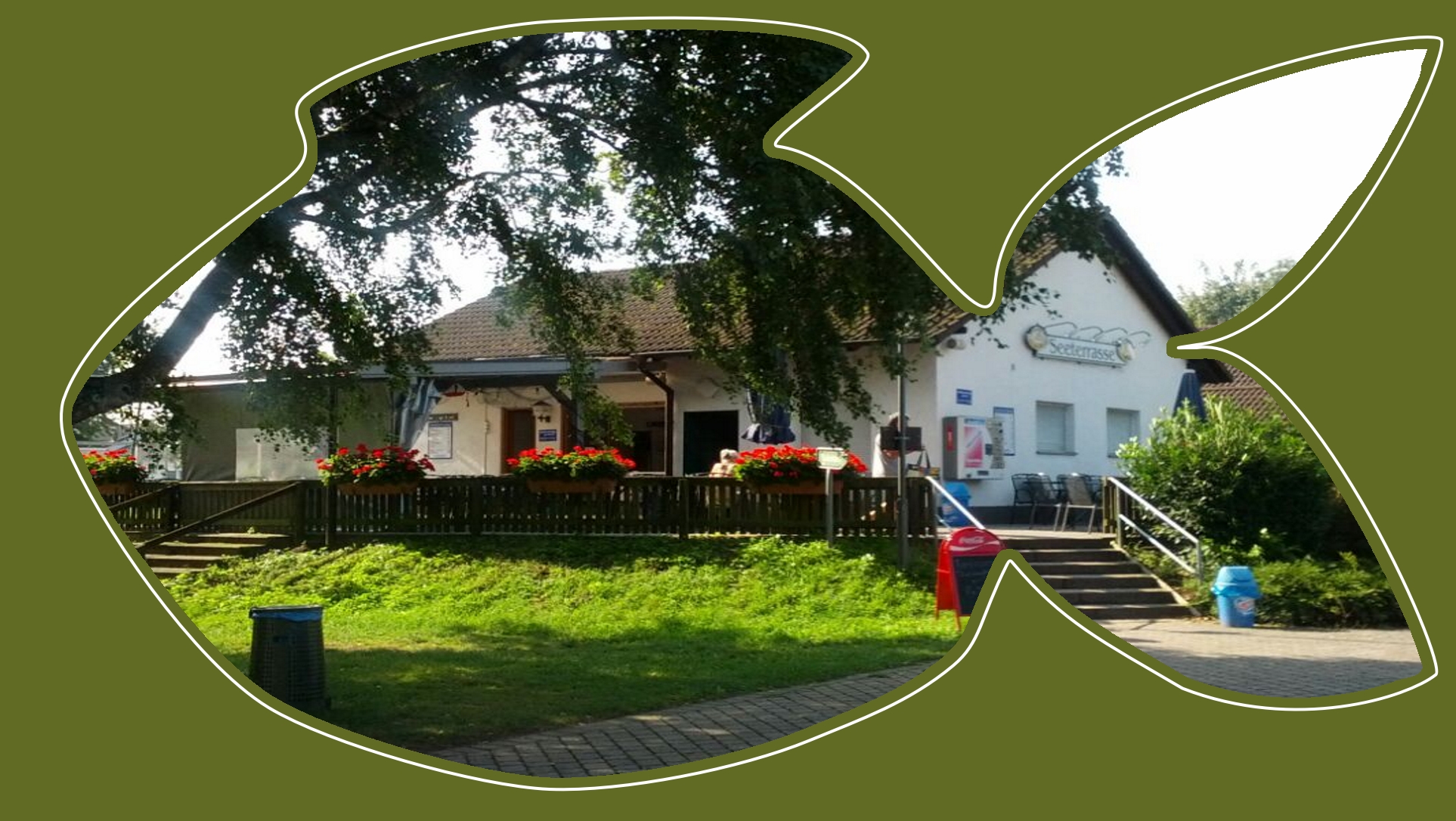 Auf der „Seeterrasse“ werden einfache Speisen und Getränke angeboten und Sie haben einen schönen Blick über die Anlage.